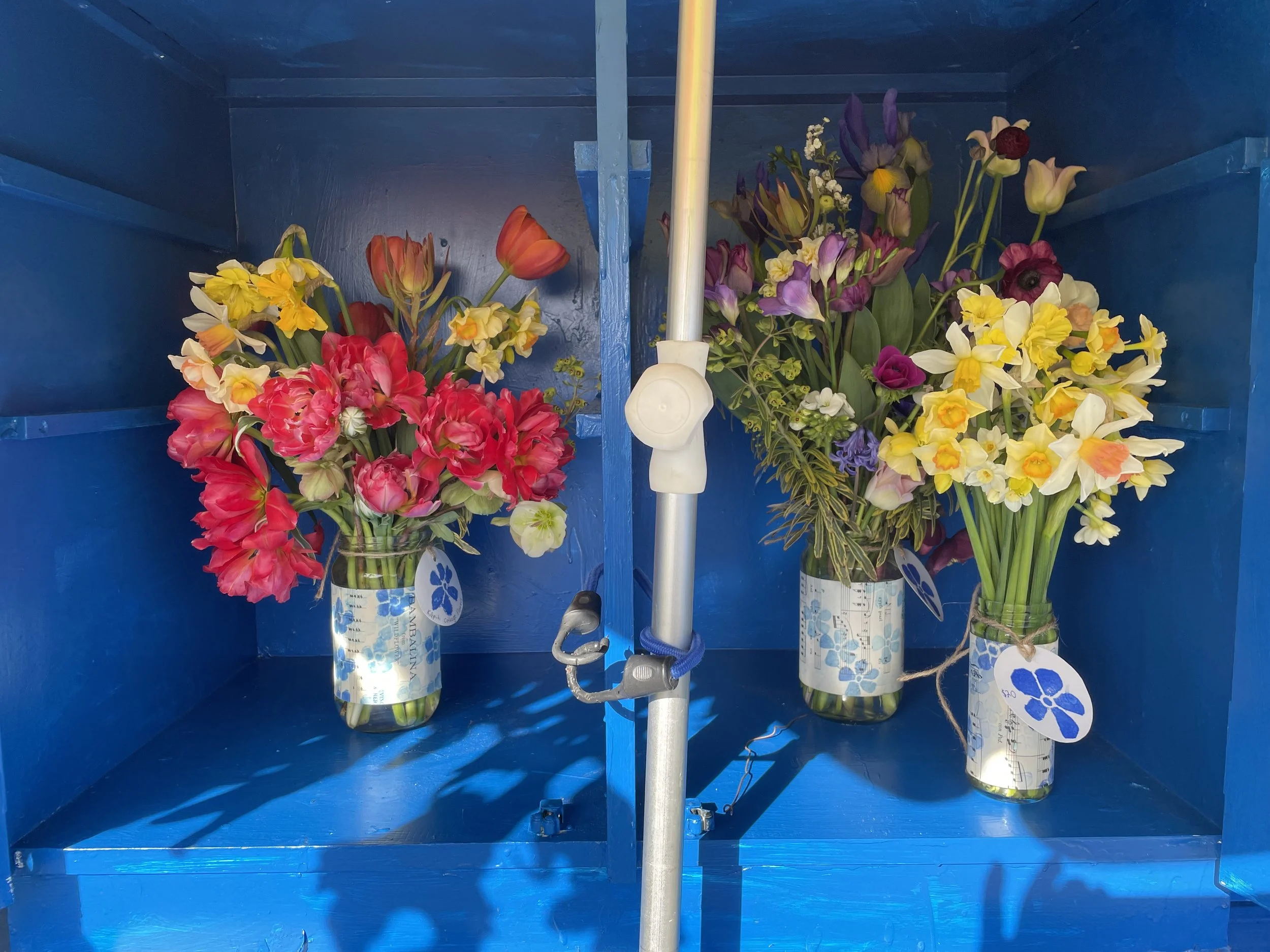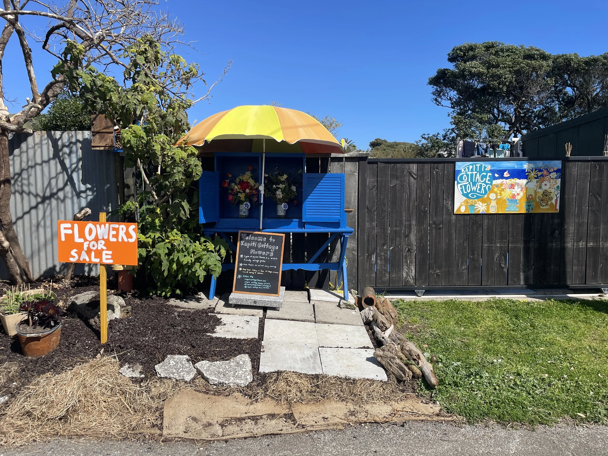I have a flower stand in Henare Street, Paekākāriki. It is open from 8.30am - 7pm everyday. I put out fresh bunches of flowers in jars (which you can keep) every morning.