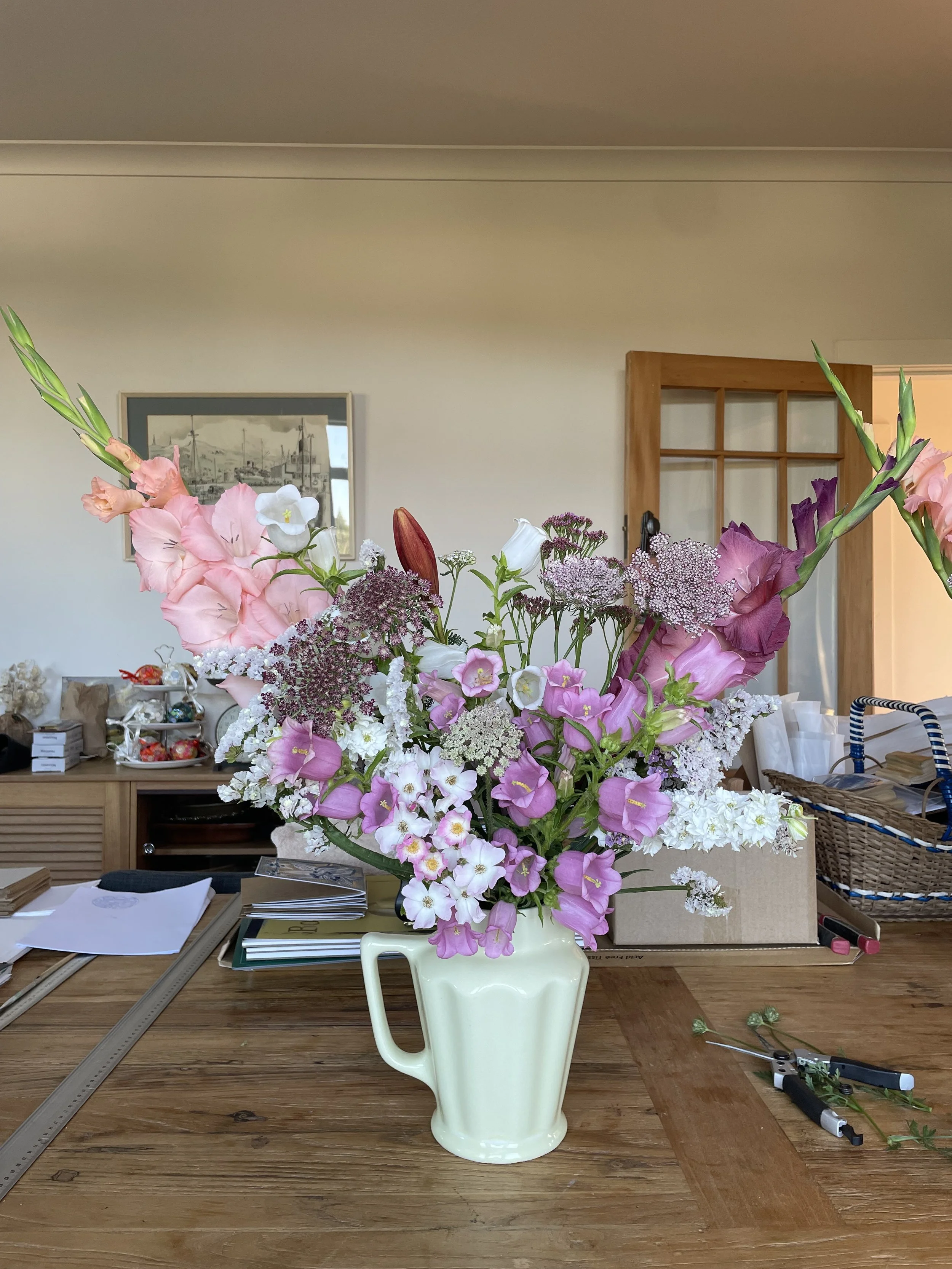 I’m equally fastidious with each flower arrangement. Each one is carefully thought out. I often make trips to the garden while arranging to get the right shaped or coloured flowers or foliage. Those little features are so important. They turn a nice flower arrangement into a beautiful one.