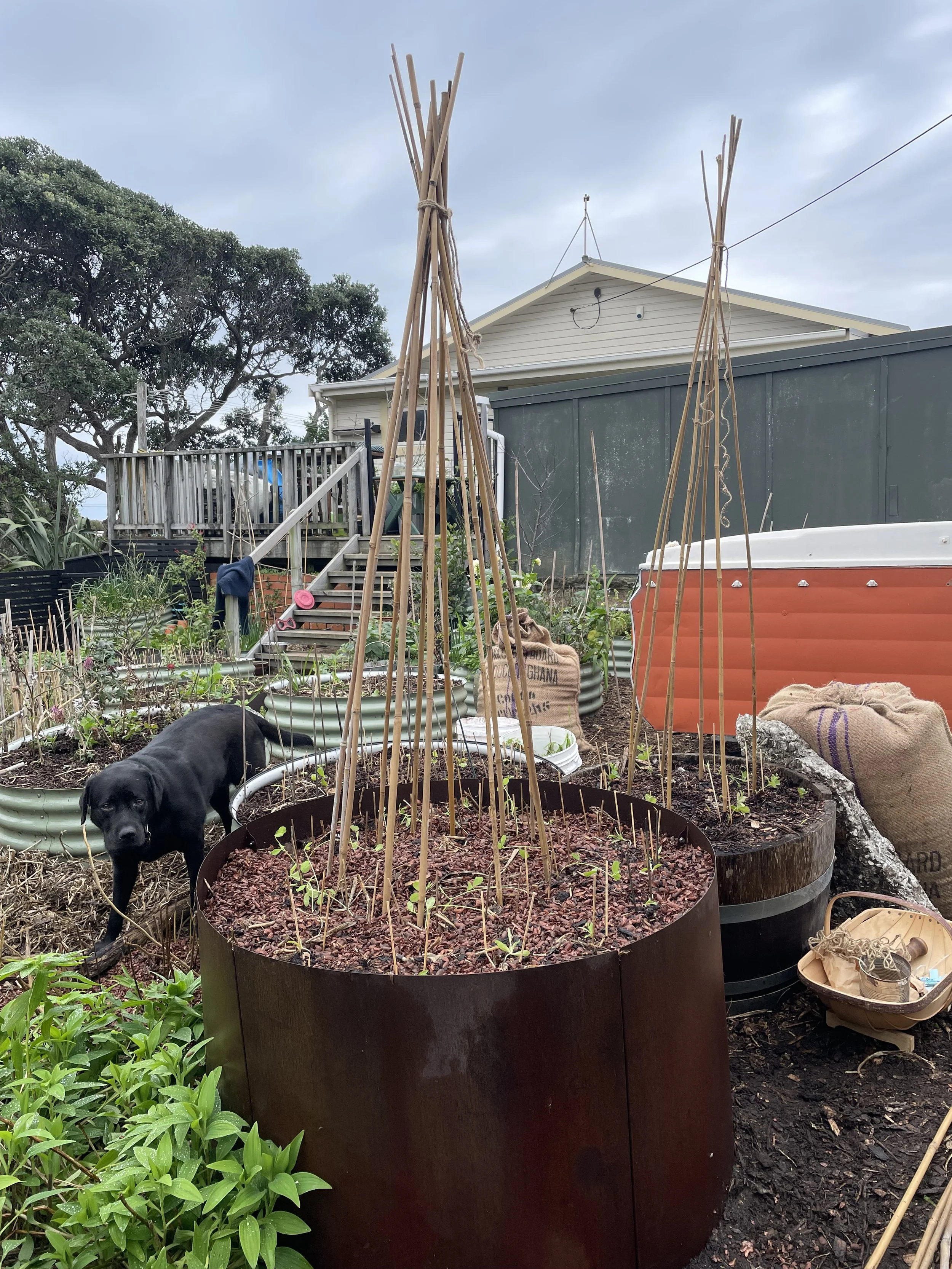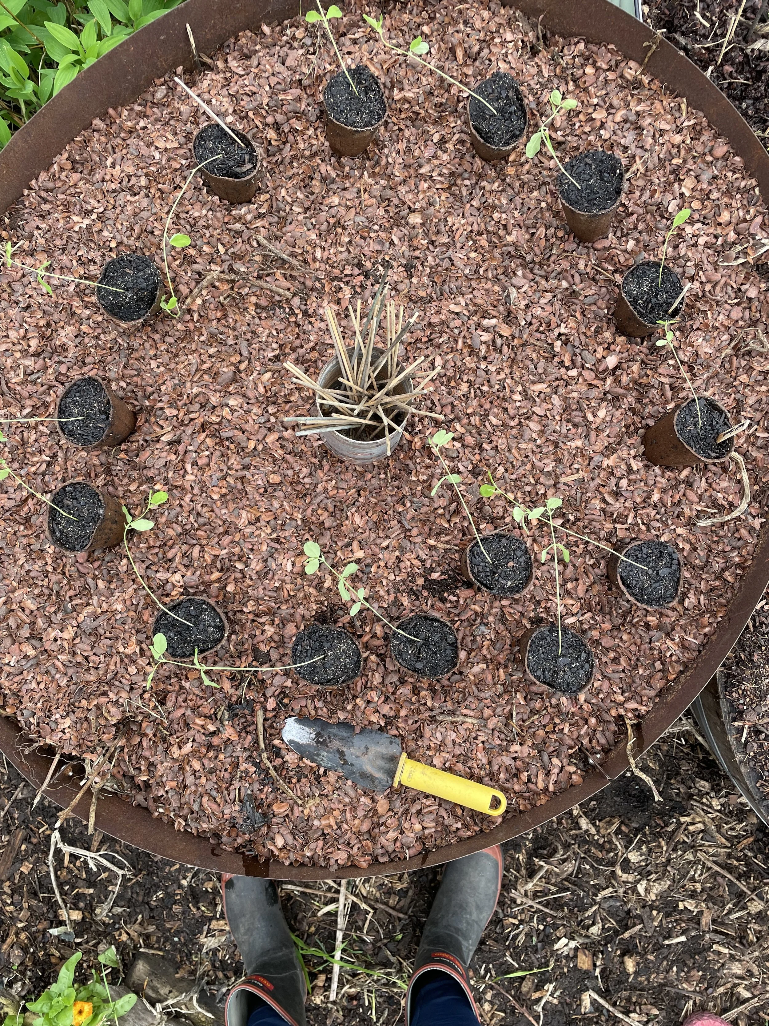 I planted the sweet peas and made wigwams for them. I use skewers to hold the seedlings into the ground, otherwise those bloody asshole blackbirds will dig them up. I also planted some lavender snapdragons, pink agrostemma and rose dianthus seedlings.