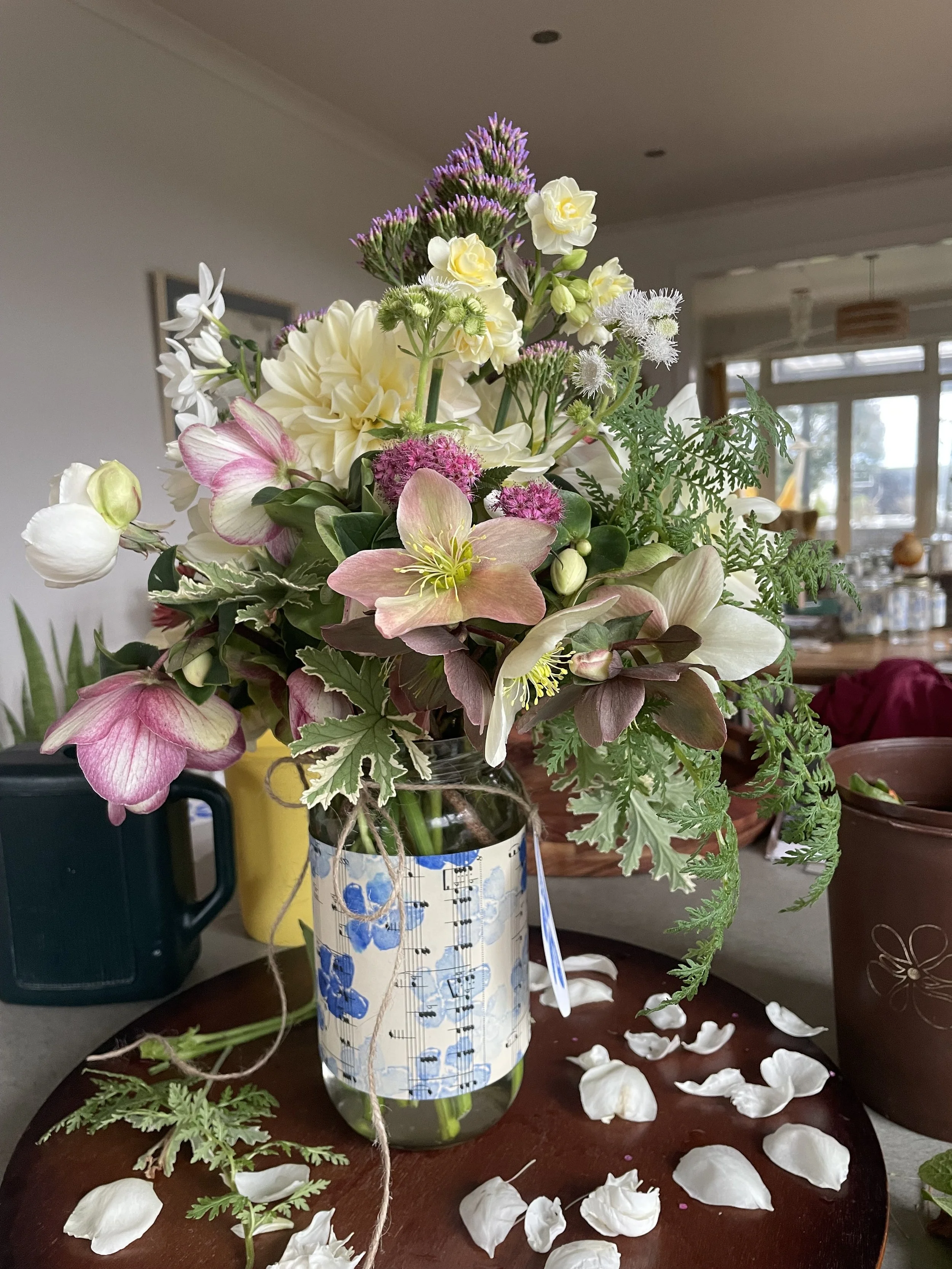 I had just enough flowers in the garden to make a bunch for the local book fair. I made a video of them spinning around on the lazy Susan for Tik Tok. Everything on Tik Tok has music. The music is what turns a middling video into a great video. I’m going with a 70s vibe. I refuse to use what everyone else is using. I picked Woodstock by Crosby Stills Nash & Young. I love their version of Joni Mitchell’s song. This video has had 669 likes. Which is great. But let’s get real. Most of the people liking my videos won’t be buying my flowers. They don’t even live near me. They probably don’t live in New Zealand. Back when I was 20 I wanted to be a film director. Finally I’ve got my chance.