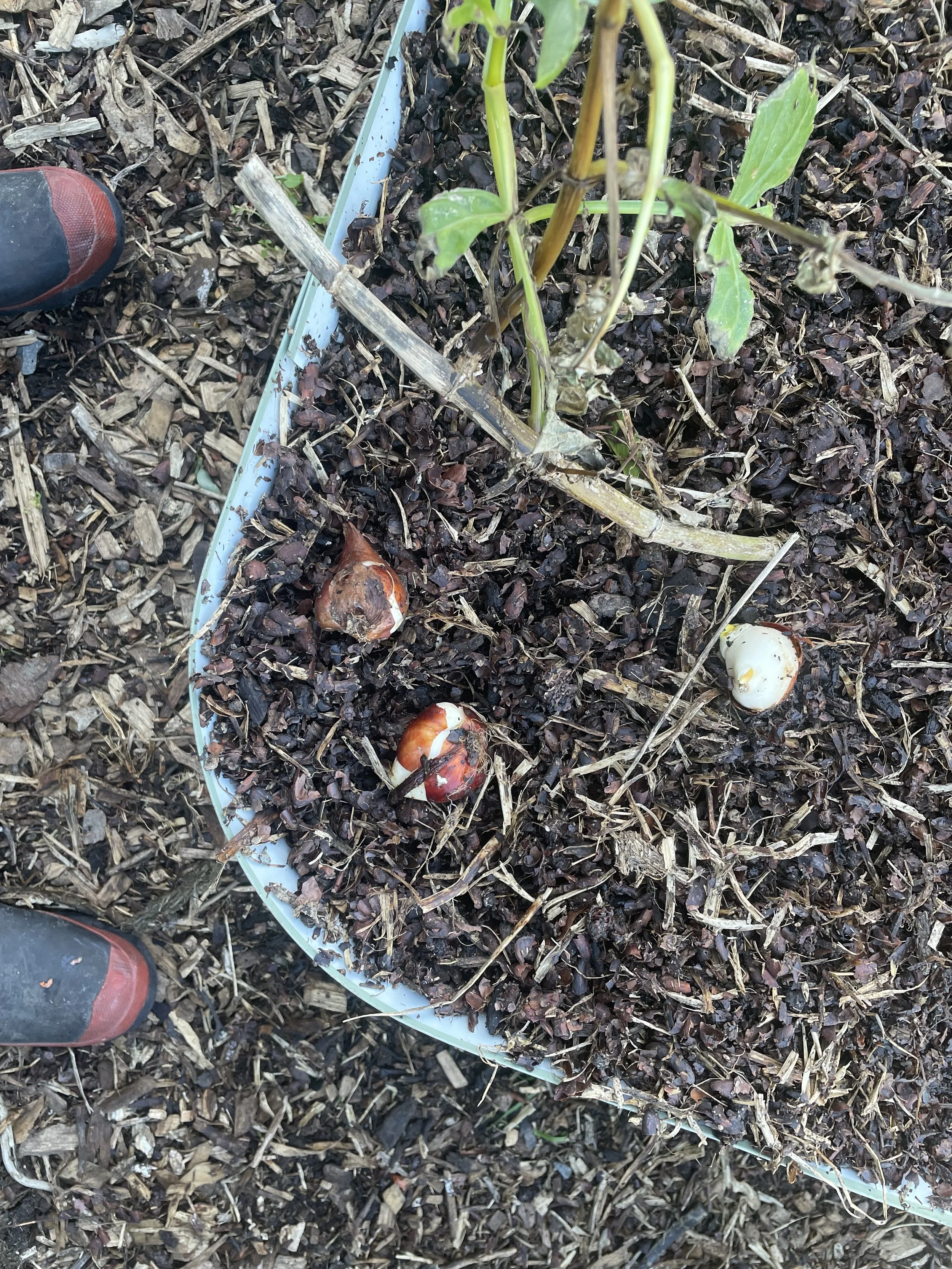 I planted my tulip bulbs and the blackbirds keep digging them up. Bloody asshole blackbirds. Every single day there are new bulbs to replant. How are they meant to grow if they keep ending up on top of the soil. It’s not like I have that many tulips.
